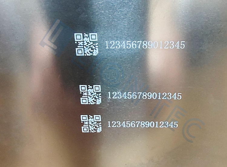 不銹鋼板表面白墨二維碼UV噴碼機打樣效果圖 高解析UV噴碼機白墨噴碼效果應用案例 白墨UV噴碼機是一種適用范圍廣泛、功能齊全、能滿足多種噴碼要求的環保型噴碼機,維護極為簡便,創新實用效率高,避免了頻繁更換噴頭和復雜使用過程等問題。適合產品廣泛,可以在黑色電子元器件上、黑色汽車零配件上、線纜、黑色PPR管材上進行賦碼,應用行業廣泛,使用成本低,可以為客戶采購降低機器購買成本,后期維護保養更經濟,更省錢。?
