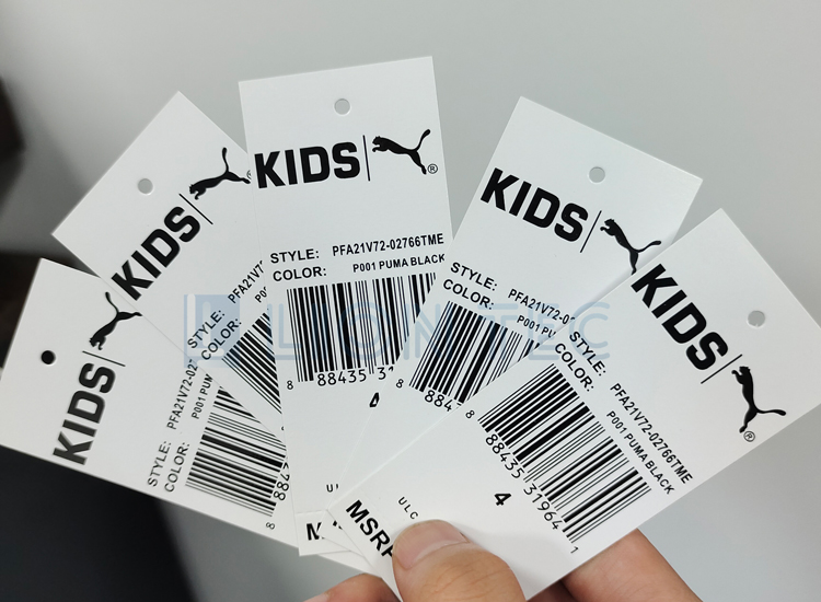 衣服白卡紙吊牌產品信息UV噴碼機噴印效果