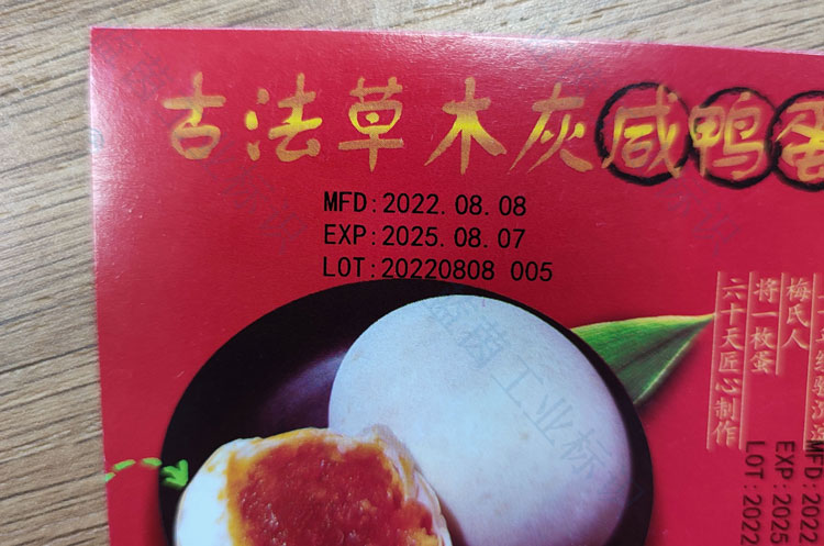 咸鴨蛋包裝紙箱生產日期UV噴碼機噴印效果,UV噴碼機可以噴印防偽追溯條碼、二維碼、生產日期、logo、圖案